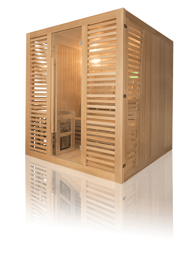 - Le modèle Venetian disponible en 3 versions allant de 2 à 5 places propose un design unique avec persiennes en bois massif sur sa façade pour ceux recherchant un design plus traditionnel dans la tradition finlandaise.