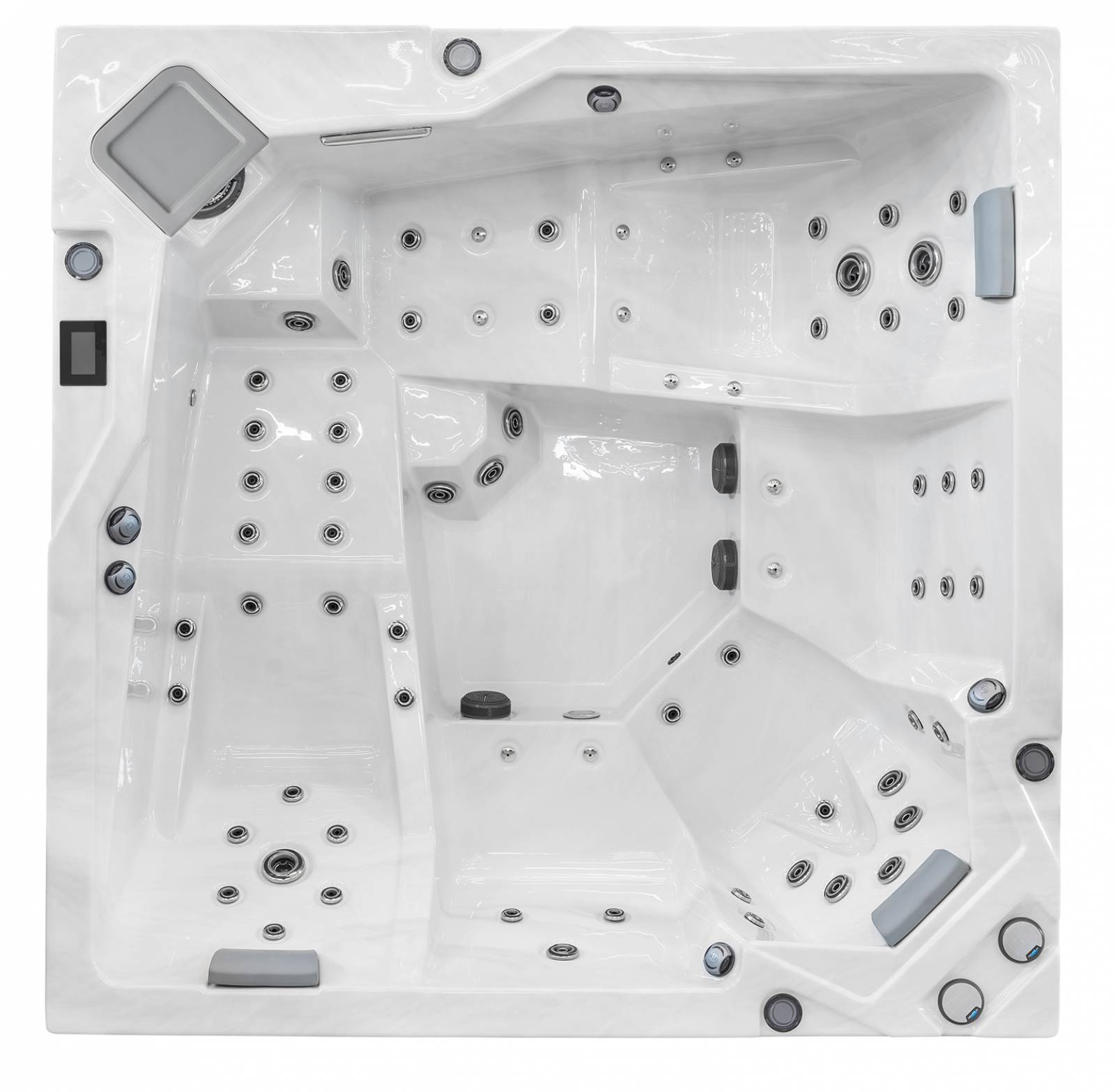 Les nombreuses buses pulsées à l'air chaud offrent un massage intégral du corps, tandis que des fonctionnalités telles que le système d'éclairage LED, le rétro-éclairage des buses et un système audio de qualité ajoutent à l'expérience pour la rendre toujours renouvelée et agréable.