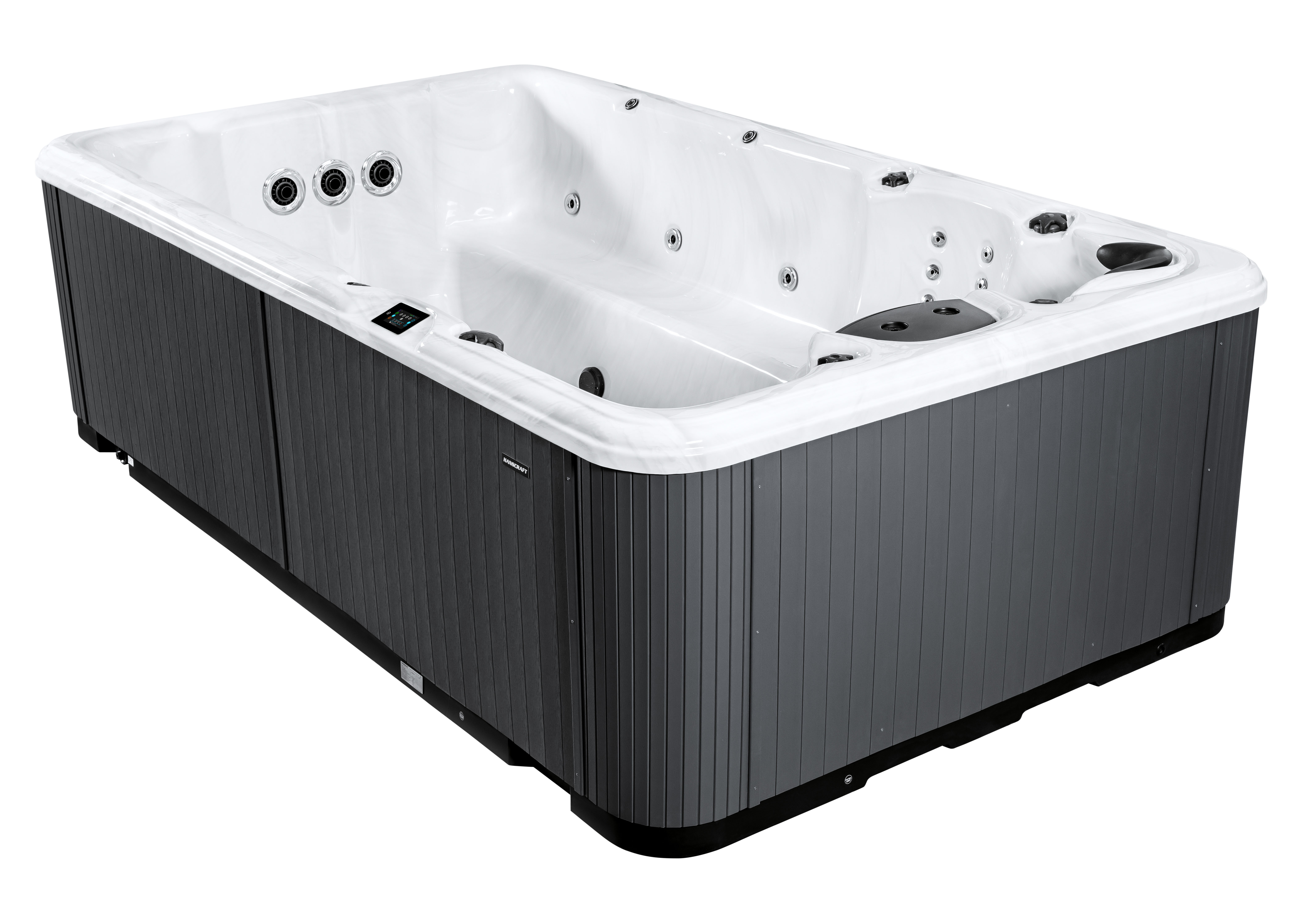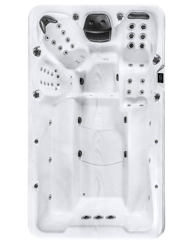 En exclusivité avec Wellamo, découvrez le spa de nage rigide acrylique EASY POOL, modèle par excellence pour ceux recherchant un spa polyvalent avec grand espace jusqu'à 9 places : 8 places assises et 1 places allongées.